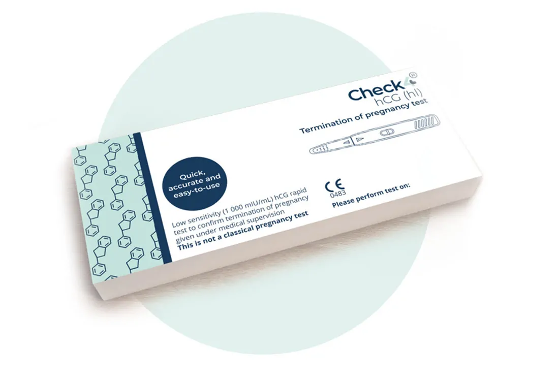 Check4®-hCG(hl) is a CE-Marked low-sensitivity rapid self-test for detection of human Chorionic Gonadotropin (hCG) level above 1000 mIU/mL in urine to determine the outcome of first-trimester termination of pregnancy (ToP) or miscarriage