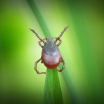 Ticks are insects living in undergrowth and forests of temperate climatic zones. Those insects can be infected by a bacterium (Borrelia) that can be then transmitted to humans (1 to 2% transmission risk) after being bitten on the arm, the leg and any other part of the body not protected with clothes. Borrelia bacterium affects the nervous system and can lead to serious neurological disorders. European strains of Borrelia include B. afzelli, B. garinii, B. burgdoferi sensu stricto B. spielmanii, and B. bavariensis which are known pathogenic. Species B. valaisiana and B. lusitaniae are potentially pathogenic. That infection can also cause cutaneous lesions and arthritis. From 3 to 10 days, or even several weeks, after being bitten, an inflammation and redness (erythema) can appear in the bite region. The inflammation can be accompanied by feverishness.
